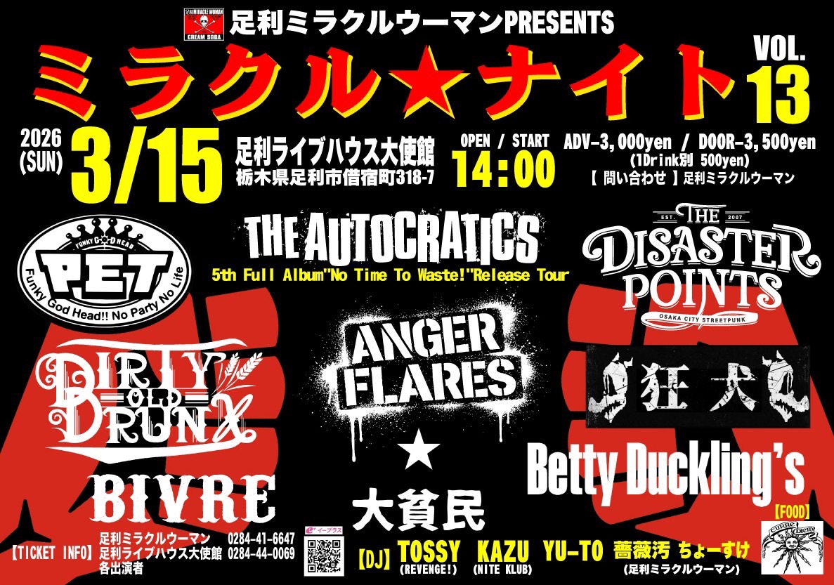3/15(日) 足利ライブハウス大使館