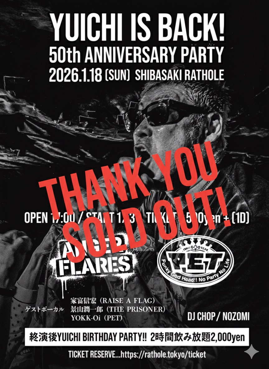 ※終演後YUICHI BIRTHDAY PARTY!! 2時間飲み放題 ¥2,000